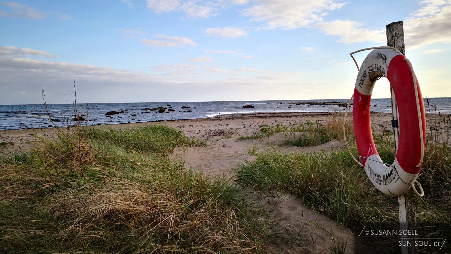 Knapp zwei Kilometer entfernt soll ein kleiner, flacher Sandstrand sein. Der Weg dorthin führt zwischen einer Wohnsiedlung und an einem Eiskiosk vorbei. Bis man direkt auf den Weg mit Holzplanken stößt. Viel Zeit bleibt uns leider nicht mehr, da die Sonne bereits langsam hinter den Dünen verschwindet. Doch es ist traumhaft. Eine steife Brise pfeift uns um die Nase, die Möwen sitzen auf Futter wartend im Sand und die Wellen brechen an den kleinen Felsen. Es fühlt sich an wie an der Ostsee. Ein wunderbarer Ausklang eines eigentlich verregneten Maitages.
