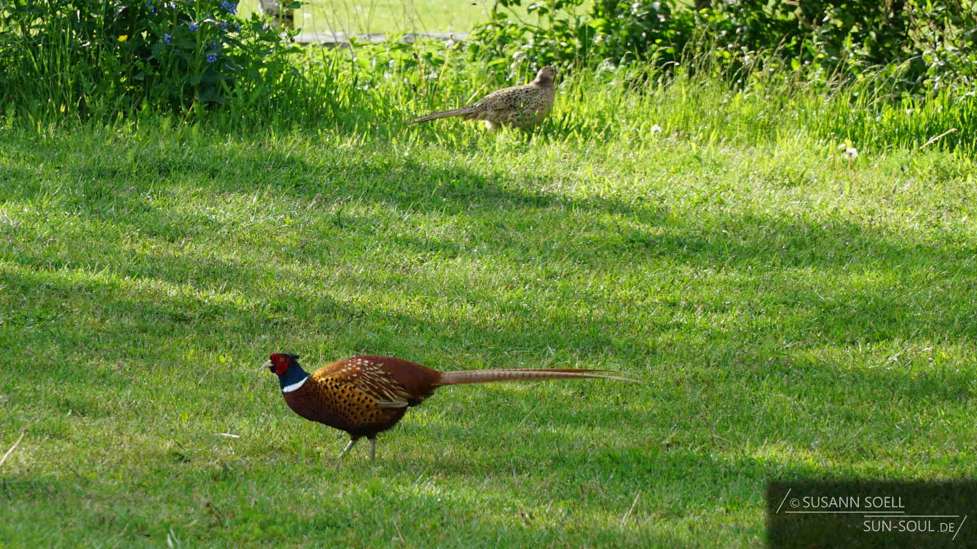 Der Haverdals Camping begrüßt uns am Eingang mit einer niedlichen Miniausgabe eines Wohnwagens (Haverdalsvägen 62, 30571 Haverdal – Web). Hier scheinen wir mit Leo richtig zu sein. 🙂 Wir können uns den Stellplatz aussuchen und wählen ein kleines Fleckchen auf der grünen Wiese. Links und rechts keine Nachbarn – wenn man von dem schimmernden Fasanen-Pärchen absieht, das wir neugierig durch die Fenster beobachten. Wir sind ganz verzückt, wie das Männchen sein Weibchen nicht aus den Augen lässt und beschützt.