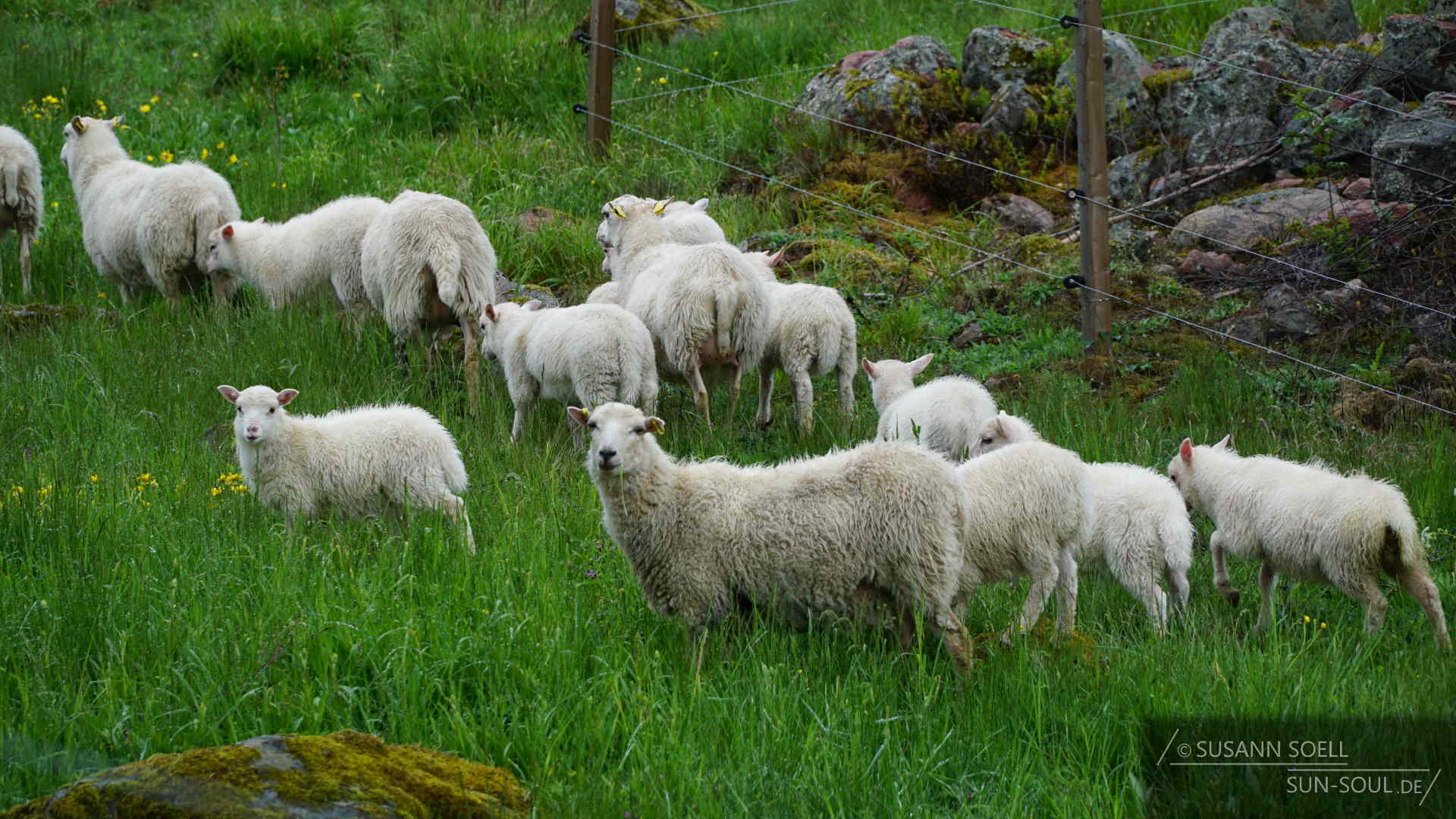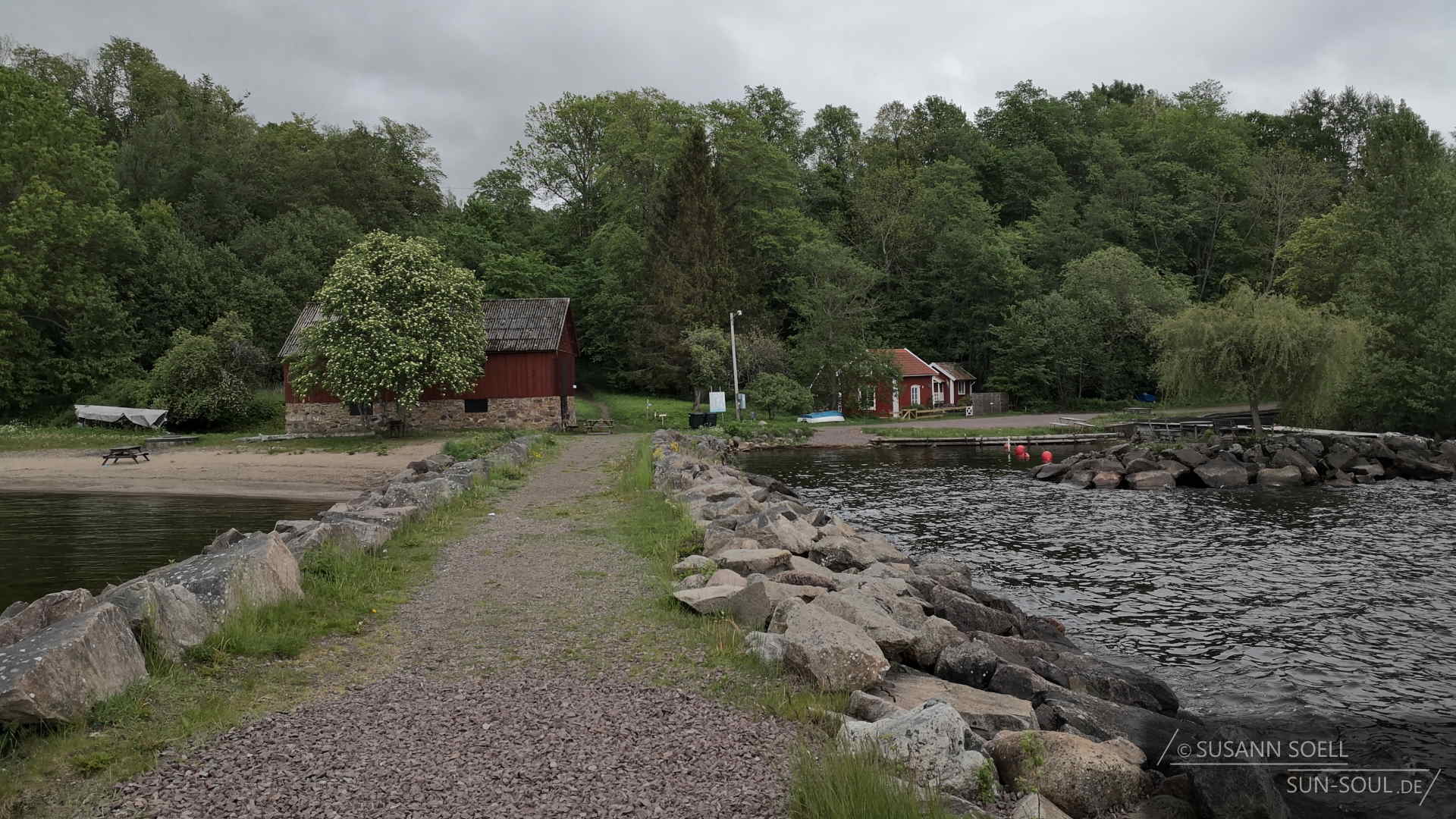 Zurück im Wohnmobil wärmen wir uns auf, stärken uns bei einem zweiten Frühstück und widmen uns anschließend – unter strengem Blick der gegenüber weidenden Schafe 😀 – der Weiterfahrt. Diese führt uns auf verschlungenen Wegen und an falunroten Häusern vorbei nach Röttle, ca. fünf Kilometer südlich von Gränna. Auf dem Röttle Parkering & Röttlestigen (563 92 Gränna, Schweden) stellen wir unser Wohnmobil ab und folgen der Straße bzw. Beschilderung zum Rasmus Kvarn.