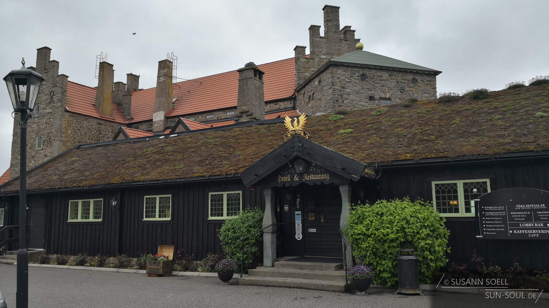 Unser Weg zurück zum Parkplatz führt uns an einem beeindruckenden Gebäude vorbei. Von außen sieht es majestätisch wie eine alte Burg aus. Bei näherer Betrachtung erweist es sich allerdings als das 4* Hotel Gyllene Uttern (Gyllene Uttern 1, 563 92 Gränna – Web). Ein bisschen traurig und geknickt, es nicht besichtigen zu können, laufen wir weiter.