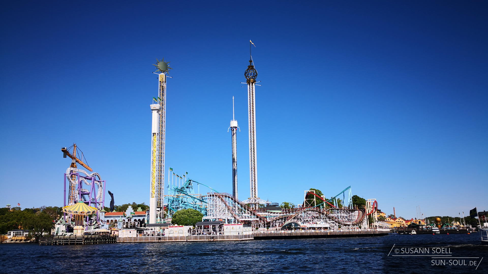 Es gibt viel zu sehen. Die kleine Insel scheint mit Attraktionen nur so vollgestopft zu sein. Schon vom Wasser aus haben wir Fahrgeschäfte des Freizeitparkes Gröna Lund in den Himmel ragen sehen. Er wurde 1883 vom Deutschen Jacob Schultheis als kleiner Rummelplatz eröffnet und ist damit heute Schwedens ältester Freizeitpark. Seine Lage ist absolut einzigartig, wenn auch flächenmäßig leider sehr begrenzt. Doch neben Achterbahnen und Kettenkarussell heißen verschiedene Konzertabende und Varietéshows die Besucher willkommen. (www.gronalund.com – 120 SEK p.P. Ende April bis Mitte September)[14]